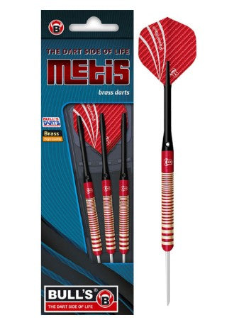 - Metis high-quality brass steel darts, the top entry-level dart in the handy BULL'S Cone Case.