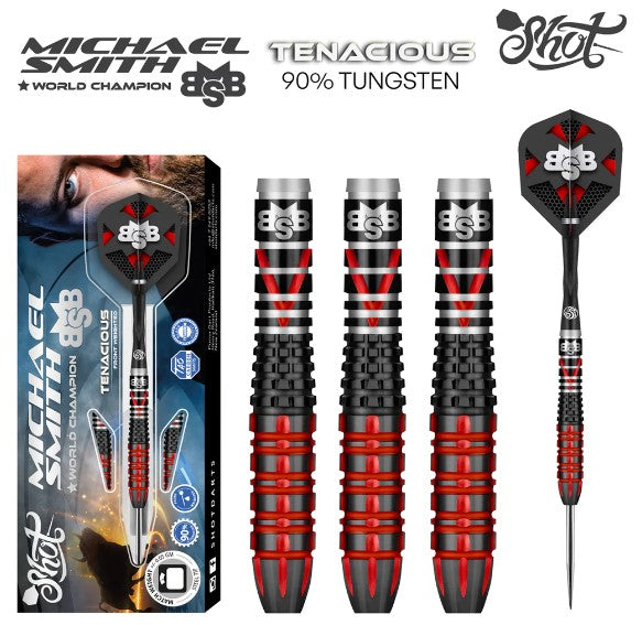Shot - Michael Smith - Steel Tip Darts - 90% Tungsten - Tenacious - Front Weighted