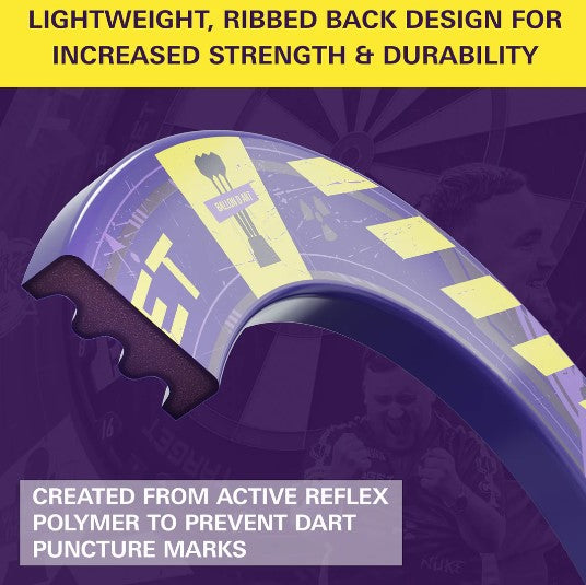 Crafted from active reflex polymer for enhanced durability and puncture resistance, the surround fits effortlessly around the dartboard without the need for wall fixings. Its ribbed back profile provides added stability, making it a professional and stylish addition to any setup.