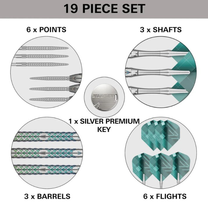 Target’s Swiss RVE Points, designed in conjunction with the Rove darts, with a laser-etched design offering maximum board grip. Swiss Points are designed with a patented locking mechanism, allowing for effortless switching of dart points. The taper and thread technology provide a secure and locked-in position, delivering stability and precision during every throw. Choose from two point lengths – 26mm and 30mm; use the included premium Swiss Point key tool to customise the dart setup.