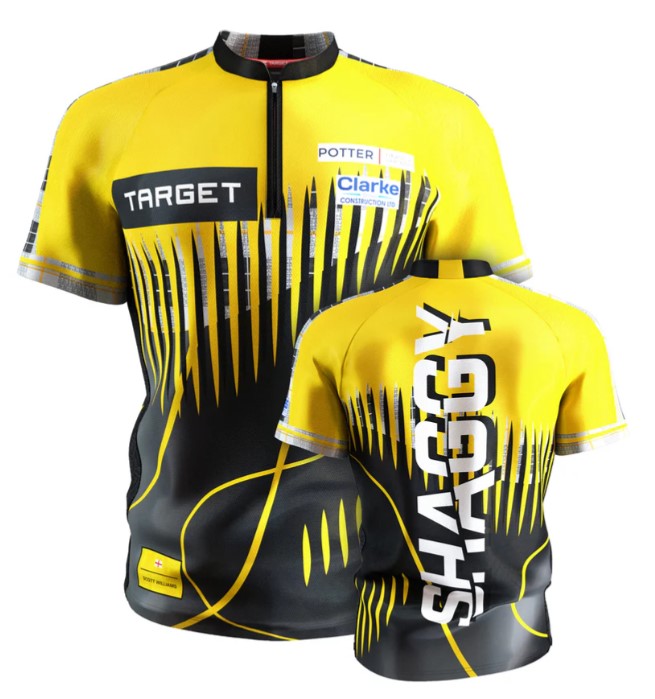 The official 2025 Scott Williams shirt is designed in collaboration with Scott Williams, known by fans as “Shaggy”. Crafted from high-performance microfibre fabric, this collarless dart shirt features an advanced ventilation system that wicks sweat away from the skin, ensuring it evaporates quickly to keep you cool and dry during intense dart play.