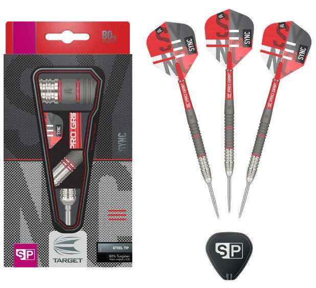 The darts are completed with a Red Pro Grip Shaft and exclusive Sync flight designs.