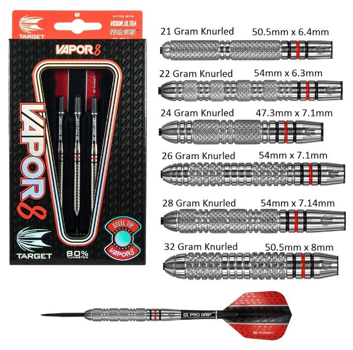 Target Vapor8 Knarled - Steel Tip Darts - 80% Tungsten