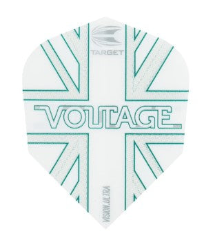 The Voltage Vision Ultra No6 flights feature the iconic Union Jack design, signature Voltage logo and the contrasting white and aqua colour scheme.